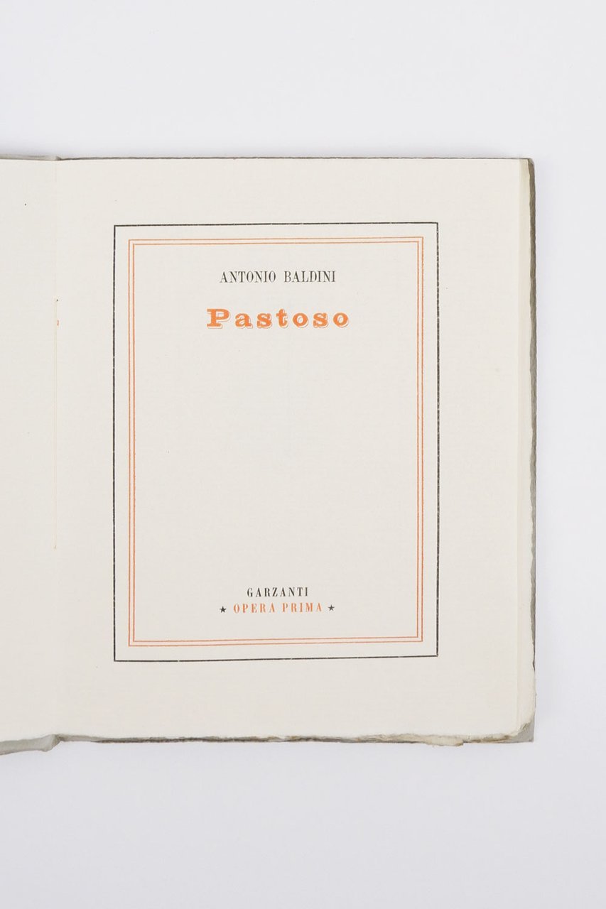 LIBROPrima edizione Garzanti.Esemplare 18 di 200 numerati, in condizioni eccellenti, a fogli chiusi.Edizione in 200 esemplari numerati in carta a mano pesante del tipo vergato «Leonardo», ripubblica nell’originale lezione l’esordio del 1914, «Pazienze e impazienze del maestro Pastoso», seguito dall’originale «Chiave del Pastoso» che rivela i personaggi della letteratura contemporanea trasfigurati nel racconto “allegorico”.