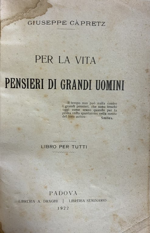 PER LA VITA. PENSIERI DI GRANDI UOMINI