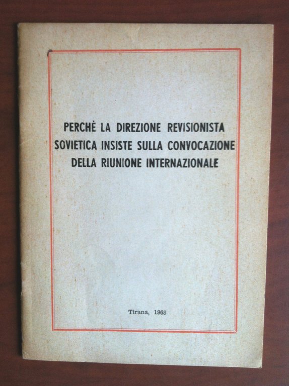 PERCHE' LA DIREZIONE REVISIONISTA SOVIETICA INSISTE SULLA CONVOCAZIONE DELLA RIUNIONE INTERNAZIONALEArticolo pubblicato sul quotidiano Zeri i Popullit del 26 dicembre 1967Casa editrice Naim Frasheri - Tirana 196823 pagine - formato 12x16,5 cmin buono stato (20 g)E14477