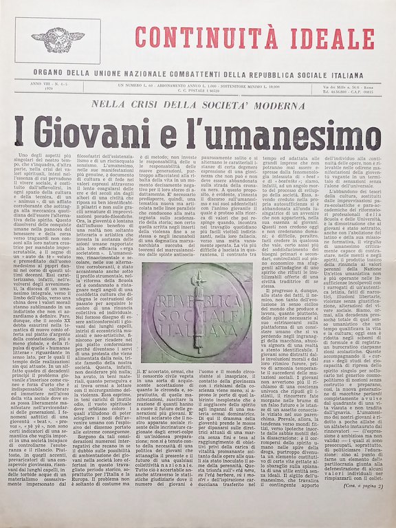 Periodico Unione Nazionale Combattenti RSI - Continuità Ideale N. 4-5 - 1970