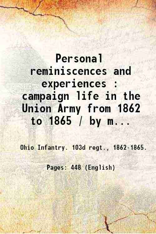Personal reminiscences and experiences : campaign life in the Union Army from 1862 to 1865 / by members of the One Hundred and Third Ohio Volunteer Infantry. 1900