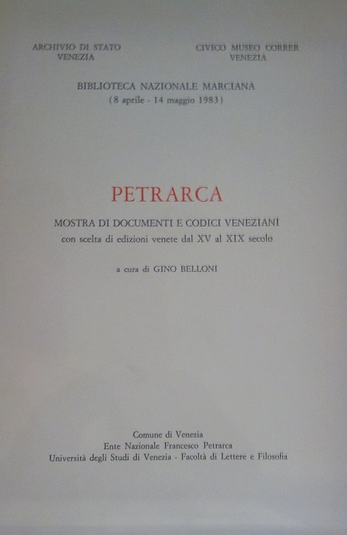 PETRARCA - MOSTRA DI DOCUMENTI E CODICI VENEZIANI CON SCELTA DI EDIZIONI VENETE DAL XV AL XIX SECOLO - ESTRATTO DALLA RIVISTA "ATENEO VENETO", ANNO XXXI, 1983, VOL.21, N.1