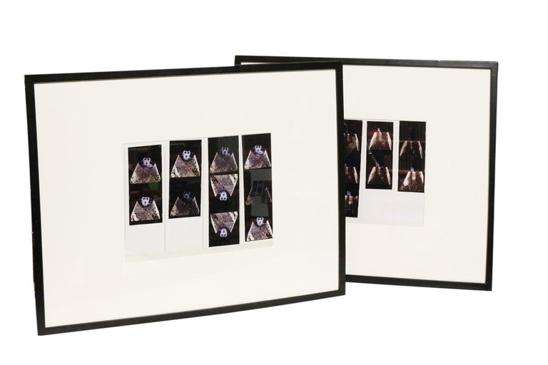 1999 | 29.70 x 25 cm | deux planches-contact encadrées sous passe-partout | Diptych of twenty original photographic portraits front and back of Michael Jackson with the golden cape embroidered 1999 | Photograph: 29.7 x 25 cm / Frames: 62 x 52 cm | two contact-sheets framed under a mount Unique original prints of these color photographs, presented like contact sheets, signed by the artist, numbered 1/1 and dated 2010 – date of sale of these unpublished shots by Pierre Bergé et Associés. Original photographs of Michael Jackson by Arno Bani It is in 1999 during a stay in London that Michael Jackson noticed Arno Bani's work in an issue of the Sunday Times magazine. Fascinated by his fashion shots, he brought the young 23 year old photographer to New York and asked him not only to photograph him, but also to define his look for the next ten years. This meeting will be followed by several working meetings and finally a three-day photoshoot at the Malakoff studios in the southern suburbs of Paris. These photographs, supposed to serve as an illustration for the Invincible album cover, were claimed by Michael Jackson's record company and were not revealed to the public until 2010, the year after the King of Pop's death. «This collaboration will finish Arno Bani's installation as one of the most talented photographers of his generation. Subsequently, he was contacted by fashion and luxury institutions such as Lacroix, Givenchy and Cartier and by musicians such as the duo Air, David Guetta and Bob Sinclar. At 25 years old, Arno Bani is a photographer recognised beyond the borders of fashion. Made of oppositions, mixing classicism and modernity, his monochrome approach to image is now inescapable and is seen on the pages of Citizen K, Spoon, Visionaire and Jalouse. He also photographed Monica Bellucci, Mélanie Thierry and Noémie Lenoir.» (Pierre Bergé et Associés sales catalogue, December 2010) Ten original photographic portraits of Michael Jackson with the embroidered golden cape * [FRENCH VERSION FOLLOWS] | Tirage original unique de cette double série photographique en couleursprésentée comme deux planche-contact, numérotées, datées et signées au verso par l'artiste à l'encre noire: 1/1, sept 2010, Arno Bani. Septembre 2010 est la date de la vente de ces clichés inédits chez Pierre Bergé et Associés. C'est en 1999 lors d'un séjour à Londres que Michael Jackson remarque le travail d'Arno Bani dans un numéro du Sunday Times magazine. Fasciné par ses clichés de mode, il fait venir le jeune photographe de 23 ans à New York et lui demande non seulement de le photographier, mais aussi de définir son look pour les dix prochaines années. Cette rencontre sera suivie de plusieurs réunions de travail et enfin d'une séance photo de trois jours dans des studios de Malakoff, en banlieue sud de Paris. Ces photographies, supposées servir d'illustration à la pochette de l'album Invincible furent revendiquées par la maison de disques de Michael Jackson et ne furent révélées au public qu'en 2010, année suivant la disparition du king of pop. « Cette collaboration achèvera d'installer Arno Bani comme l'un des photographes les plus doués de sa génération. Par la suite, il est sollicité par des institutions de la mode et du luxe comme Lacroix, Givenchy et Cartier ou par les musiciens du duo air, David Guetta et Bob Sinclar. À vingt-cinq ans, Arno Bani est un photographe reconnu au-delà des frontières de la mode. Faite d'oppositions, mélangeant classicisme et modernité, son approche monochromique de l'image est désormais incontournable et s'exprime dans les pages de Citizen K, Spoon, Visionaire ou Jalouse. Il photographie ainsi Monica Bellucci, Mélanie Thierry ou Noémie Lenoir. » (Catalogue de la vente Pierre Bergé et Associés, décembre 2010)