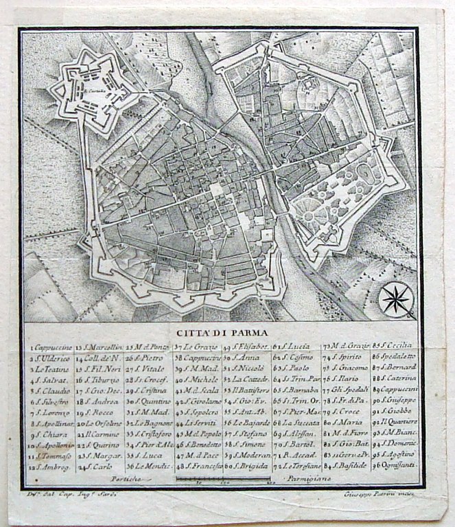 Pianta Citt‡ di Parma Incisione su rame G.Patrini primo '800 disegno Sardi