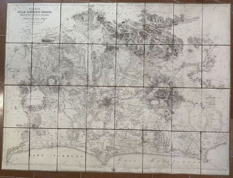 PIANTA DELLA CAMPAGNA ROMANA NELLO STATO ANTICO E MODERNO SULLA PROPORZIONE DI 1 A 100000 PUBBLICATA NELL'ANNO MDCCCLXII