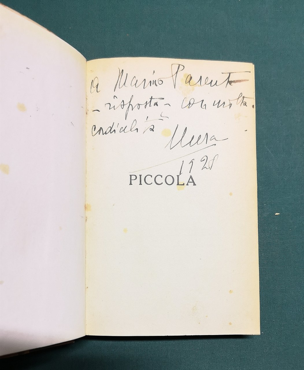 >in-16, pp. 263, leg. m. tela, cop. fig. cons. Esempl. con dedica autografa a M. Parenti. Buon esemplare.