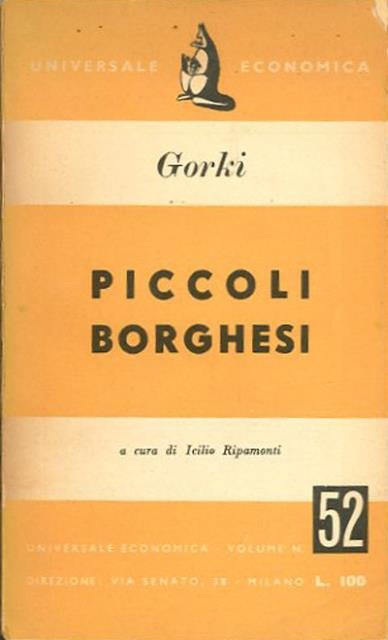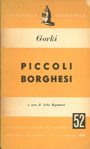 191 p. ; 18 x 11 xm. Universale economica. Serie Letteratura. Nel 1899 Gor'kij scrisse due drammi: "Piccoli borghesi" e "Bassifondi", rappresentati nel 1902. L'approdo al teatro, più che per l'influsso del matrimonio che lo unì giovanissimo a un'attrice e a una compagnia di girovaghi, si spiega col vigore, l'immediatezza, l'essenzialità dei personaggi che popolano la sua opera. Fanno schermo all'arte di Gor'kij le sue convinzioni politiche, che se fanno di lui un apostolo della giustizia e delle rivendicazioni sociali, si sovrappongono tuttavia all'ispirazione. Opera tuttavia di grande valore, "Piccoli borghesi" è in sintesi il quadro di una società che si consuma nell'acredine verso un mondo nuovo che sorge e che indica il fallimento di un'educazione di stampo borghesi del tutto superata. Brossura editoriale, coperta in cartoncino flessibile colorata (b/n e gialla). Qualche lieve segno del tempo (ingiallimento della carta) ma nel complesso buon esemplare. Codice libreria 3274.