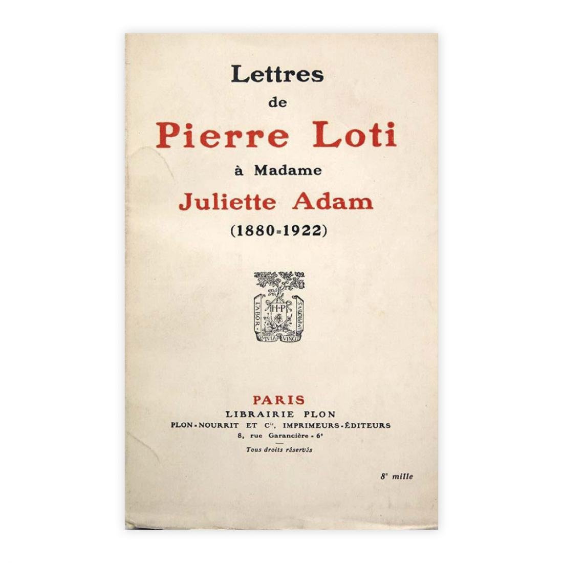 Autore: Pierre Loti Titolo: Letters a Madame Juliette Adam Sottotitolo: (1880=1922) Edizione: Librairie Plon - Paris 1924 Dimensioni: 12 x 19 cm c.a. Pagine: 248 Copertina: Brossura Condizioni: Ottime come da foto
