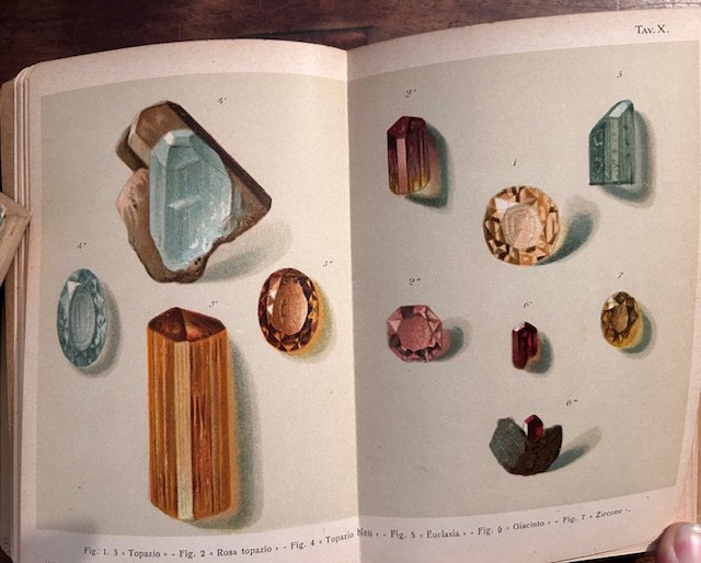 Pietre preziose naturali. Pietre preziose ottenute artificialmente mediante processi chimici. Imitazione delle pietre preziose (pietre false). 23 incisioni e 14 tavole di cui 12 in cromilitografia