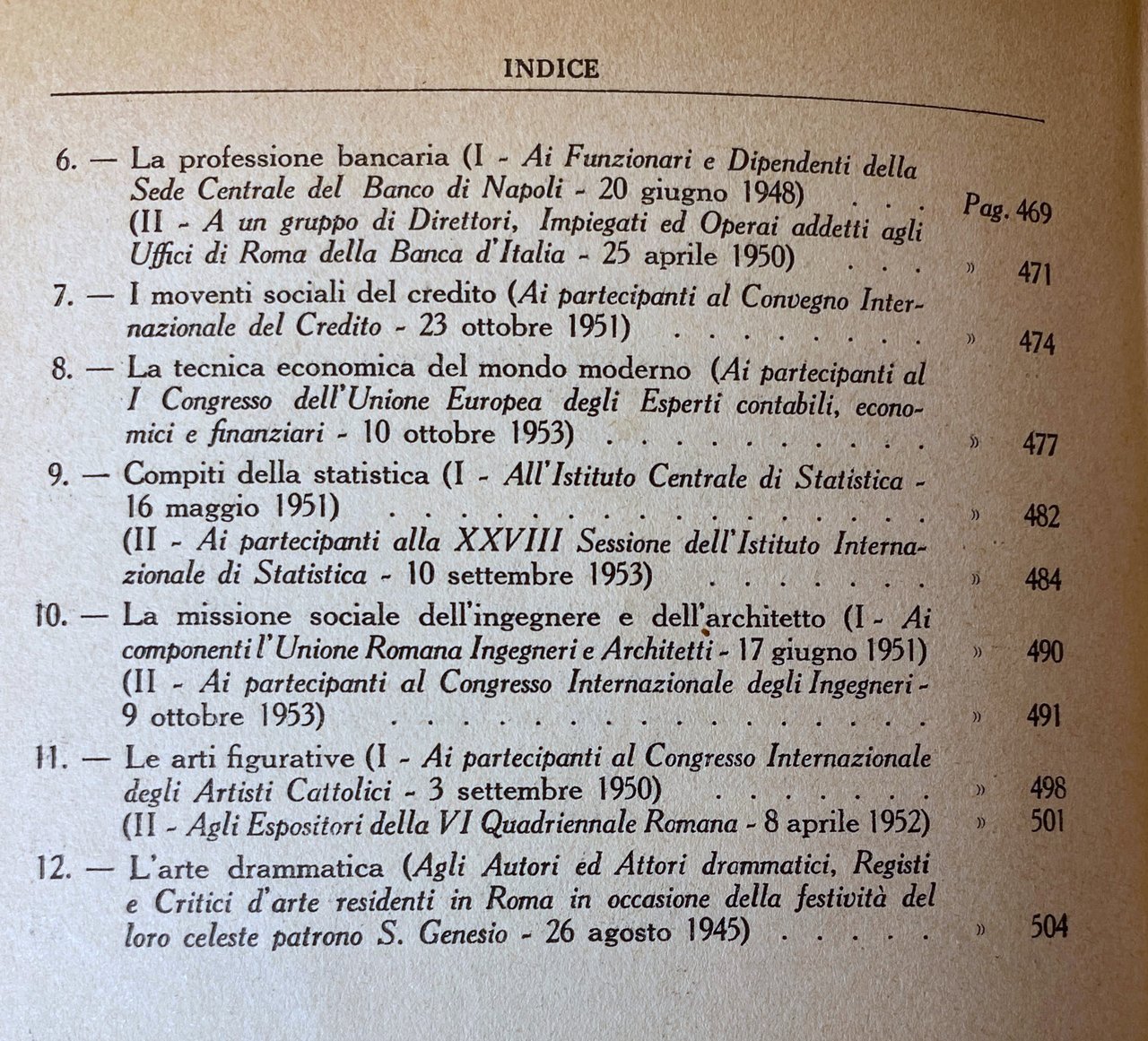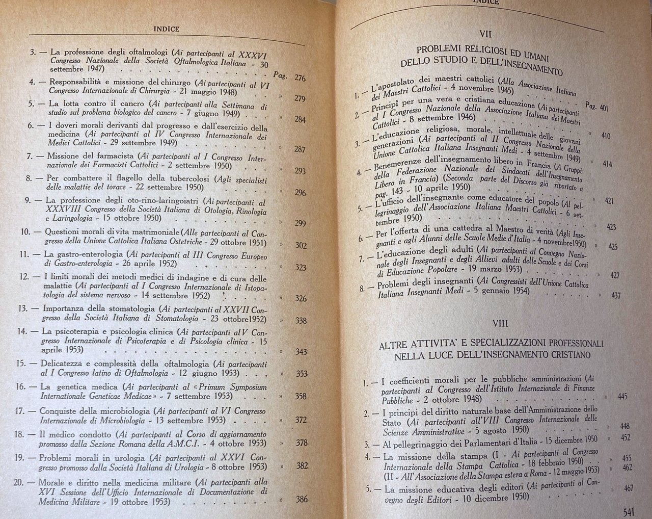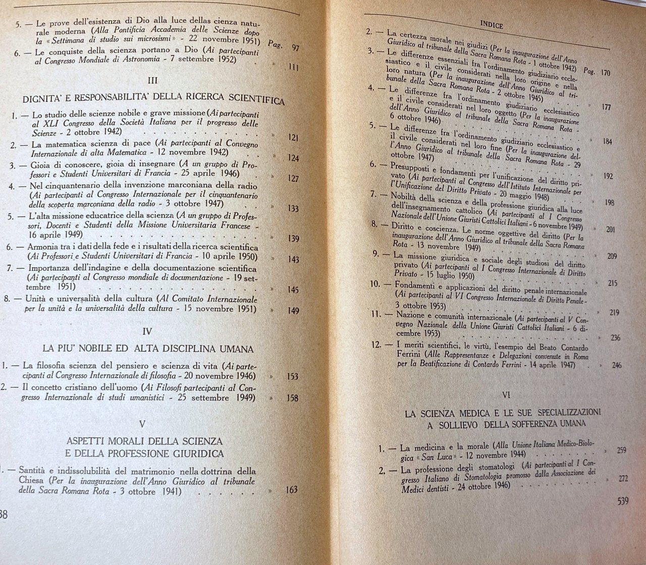 - Collezionismo, Libri rari, Libri fuori catalogo, Discorsi, Scritti, Opere generali, Intellettuali, Teologia, Religione, Cattolicesimo, Cristianesimo, Chiesa, Famiglia, Encicliche, Raccolte, Antologie, Missione, Ricerca scientifica, Diritti umani, Medicina, Educazione, Mestieri, Professioni, Papato, Papi, Anni Trenta, Anni Quaranta, Dopoguerra, Dottrina, Cultura, Laici, Pontefice, Cristo, Valori morali, Vita pratica, Società, Magistero, Pio XII, Studenti, Azione Cattolica, Congressi, Insegnamento, Professori, Università, Lettere, Scienze, Creazione, Esistenza di Dio, Progresso, Pace, Gioia, Conoscenza, Pedagogia, Didattica, Fede, Documenti, Matrimonio, Diritto Canonico