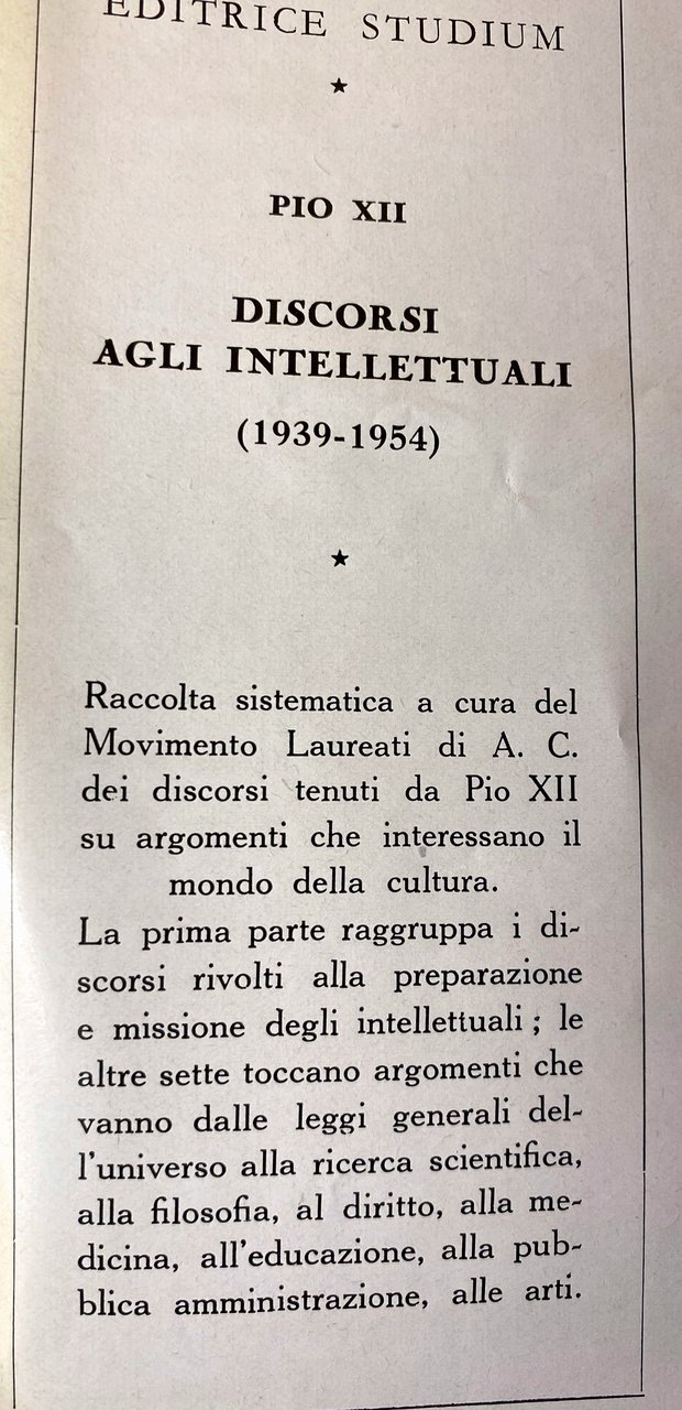 PIO XII DISCORSI AGLI INTELLETTUALI (1939-1954)
