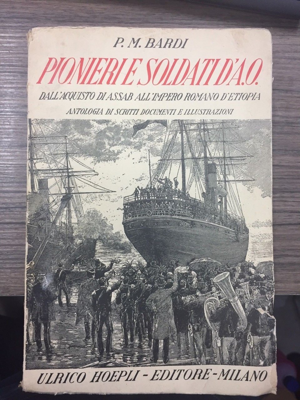 Dall'acquisto di Assab all'impero d'Etiopia. Antologia di scritti documenti e illustrazioni. Milano. Hoepli 1936, 8°, pp. 578, con 64 tavole f.t. Bross. Edit. Con piccole rotture marginali. Segni del tempo.