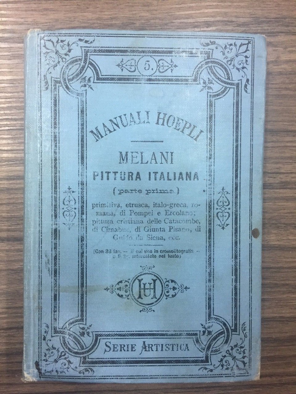 Pittura italica primitiva etrusca, italo greca, romana, di Ercolano di Pompei, … Milano. Hoepli 1885, 16°, pp. XX+164, con 38 tavole (di cui una in cromolitografia) e 9 figure intercalate nel testo. Leg. Edit. Segni del tempo.