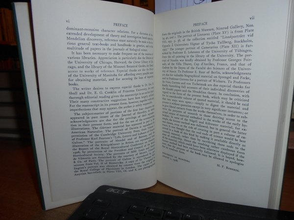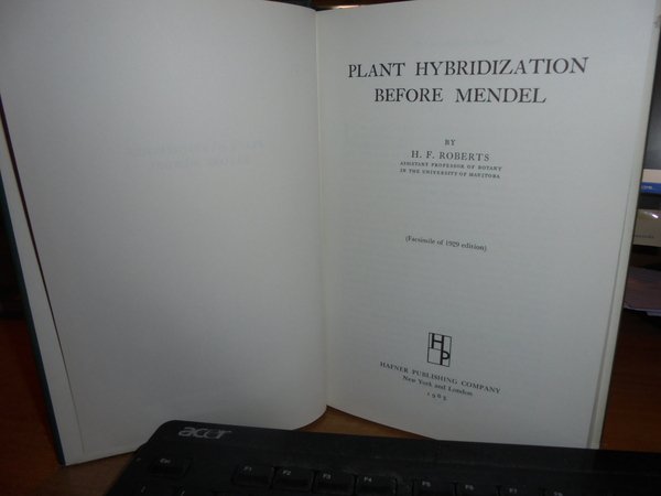 By H.F. ROBERTS. New York and London, Hafner Publishing, 1965. PLANT HYBRIDIZATION BEFORE MENDEL. In-8°, tela verde scuro con titolo in oro al dorso e sovracopertina. xiv, 374 pp. con illustrazioni nel testo. In ottimo stato di conservazione o come nuovo. Uff. C - III - 6