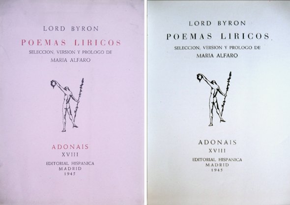 Madrid, Editorial Hispánica, 1945 ["Adonais"]. 8vo.; 72 pp., 3 hs. Edición limitada de 425 ejemplares. Cubiertas originales.