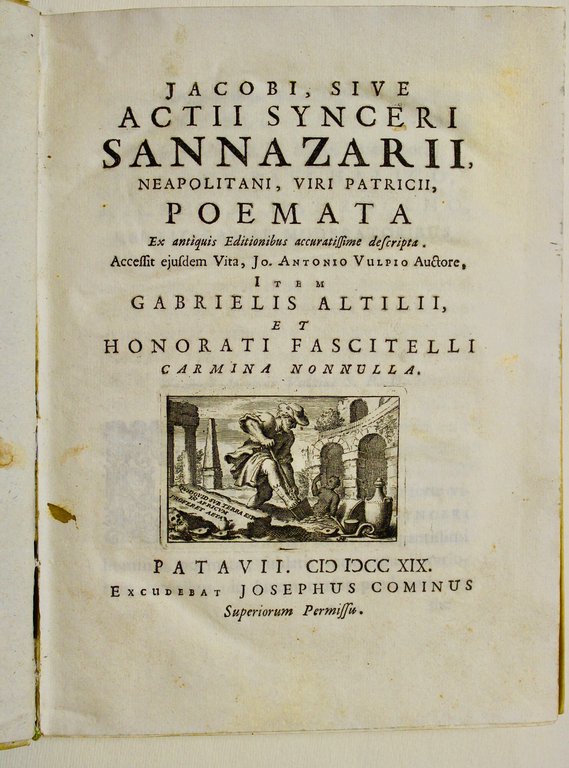 Poemata. Ex antiquis editionibus accuratissime descripta. Accessit ejusdem Vita, Jo. Accessit ejusdem Vita, Jo. Antonio Vulpio Auctore. Item Gabrielis Altilii, et Honorati Fascitelli Carmina Nonnulla.