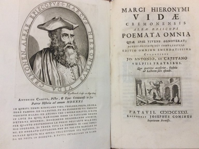 POEMATA OMNIA. - Quae ipse vivens agnoverat; duobus voluminibus comprehensa. Editio omnium emendatissima curantibus Jo. Antonio, et Cajetano Vulpiis fratribus. Quae praeterea accesserint, Epistola ad Lectorem satis ostendit.