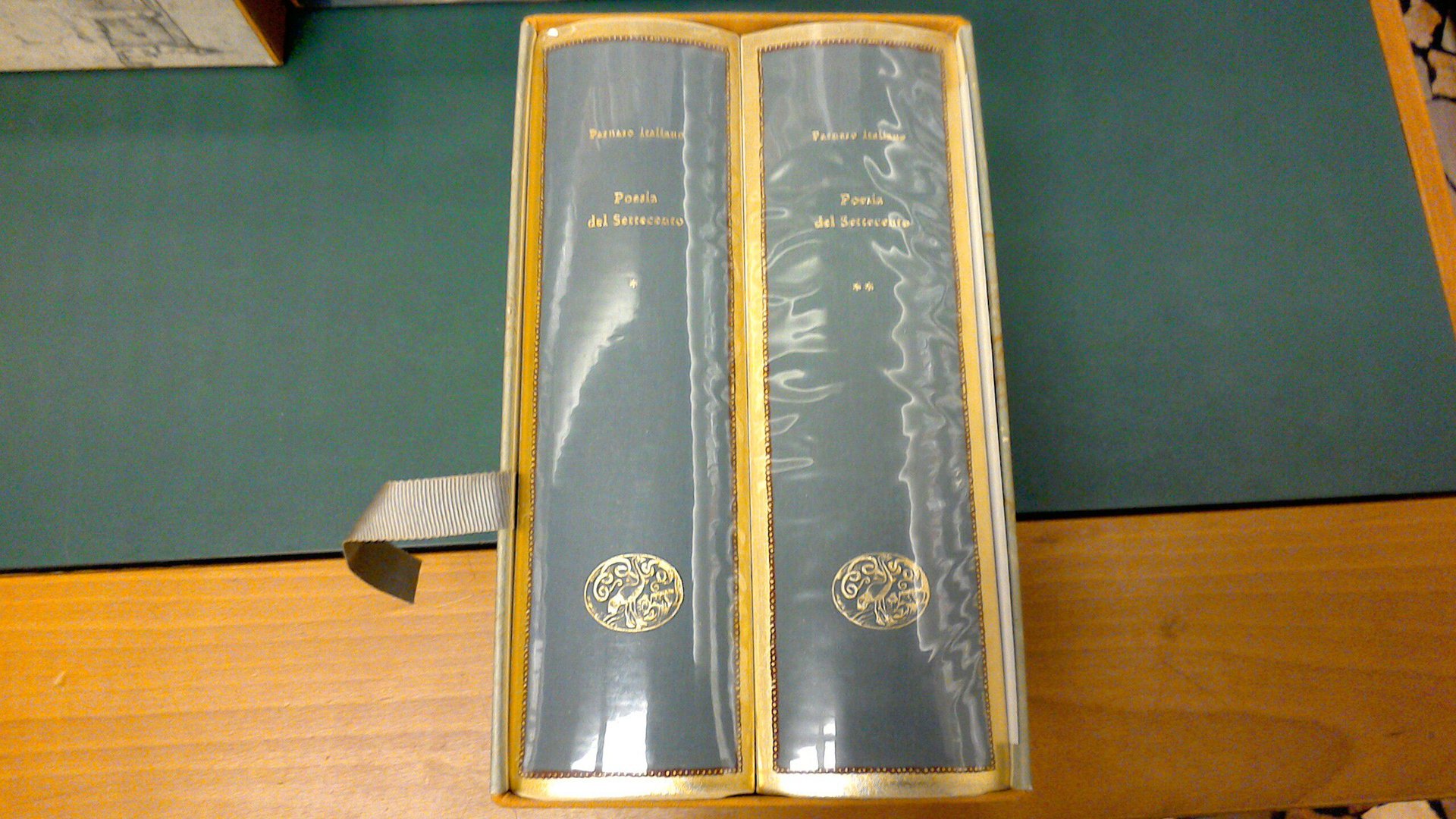 - rilegatura in tela, fregi e titoli in oro sul dorso, plastica protettiva trasparente, cofanetto rigido, contengono alcune tavole a colori fuori testo