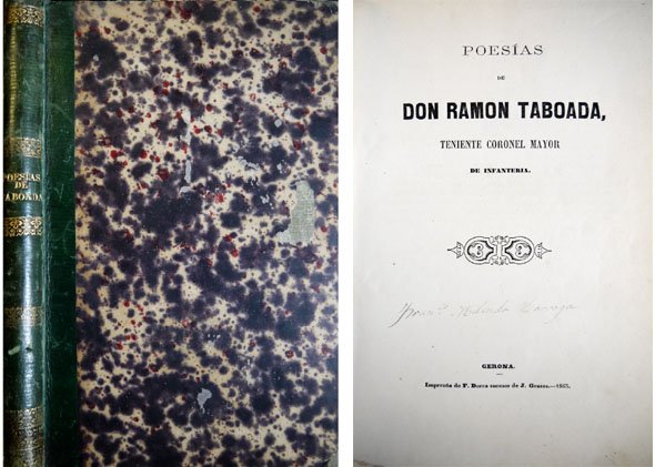 Gerona, Imprenta de F. Dorca, sucesor de J. Grases, 1863. 4to. alargado; 152 pp., 1 h. Encuadernación de la época en media piel.