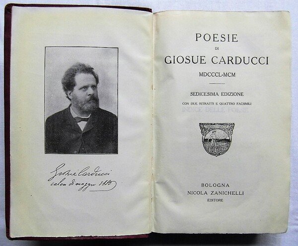 POESIE DI GIOSUE' CARDUCCI. SEDICESIMA EDIZIONE CON DUE RITRATTI E QUATTRO FACSIMILI.