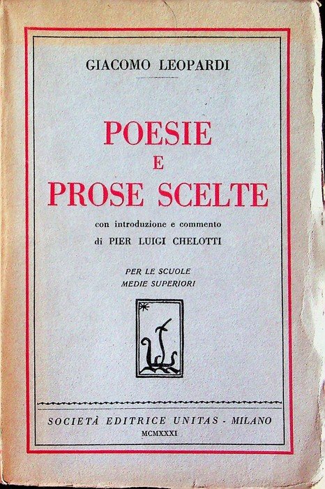 - Prima edizione. Con introduzione e commento di Pier Luigi Chelotti, per le scuole medie superiori.