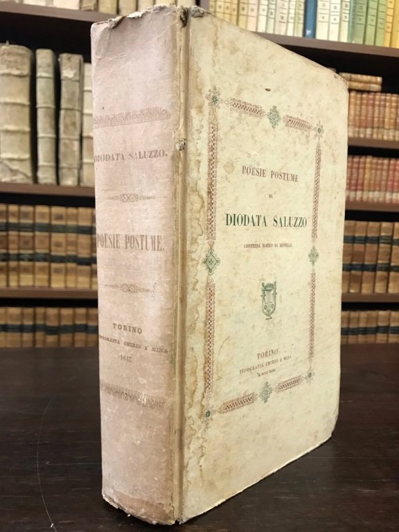 In-8° (cm. 24,8), legatura editoriale in cartonato a stampa (lievi segni d'usura); pp. [2] 679 [3b] in barbe, in buono stato, con sporadiche e lievi fioriture e una leggerissima gora marginale in fine. Edizione originale, le poesie sono precedute da un elogio della contessa scritto da Coriolano di Bagnolo [cfr. Croce B., Varietà di storia letteraria e civile. Serie prima, Laterza 1949, p. 233]. Seguono lettere di scrittori fra cui Prospero Balbo, Clotilde Tambroni, Giuseppe Parini, Saverio Bettinelli, Carlo Denina, Madame de Stael, Alessandro Manzoni, Vincenzo Monti, Lodovico di Breme, Tommaso Moore, e molti altri. Esemplare molto buono. (NG6)