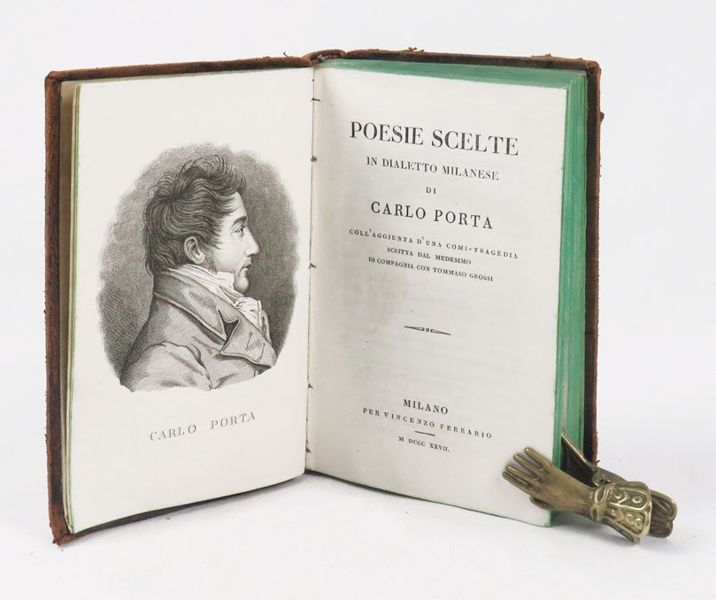 LIBRORara seconda edizione Ferrario. Sporadiche fioriture ma bell’esemplare a grandi margini.Questa seconda edizione uscita dai torchi di Ferrario conta una decina di poesie in meno rispetto alla prima del 1821. Viene però inserita la sestina, allora inedita, «Al Pittor Boss» (Poesie ed. Meridiani, p. 719), una sorta di dedica con cui Porta inviò la traduzione del primo canto dell’Inferno a Giuseppe Bossi. Molto raro, solo cinque esemplari registrati nel catalogo SBN.Bibliografia delle edizioni portiane, n. 8