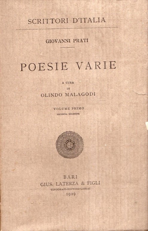 Poesie varie. Giovanni Prati. Laterza (1929)