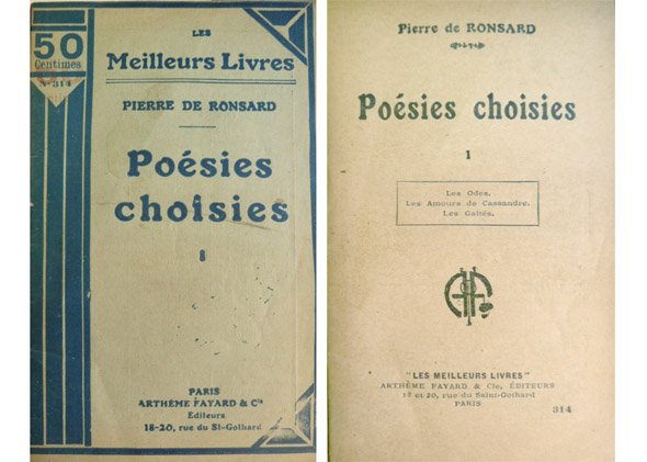Poésies choisies. [I: Les Odes. Les Amours de Cassandre. Les Gaités. II: Les Amours de Marie. Les Hymnes. Les Élégies. Les Discours. La Franciade. Les Sonnets à Hélène. Dernières Poésies].