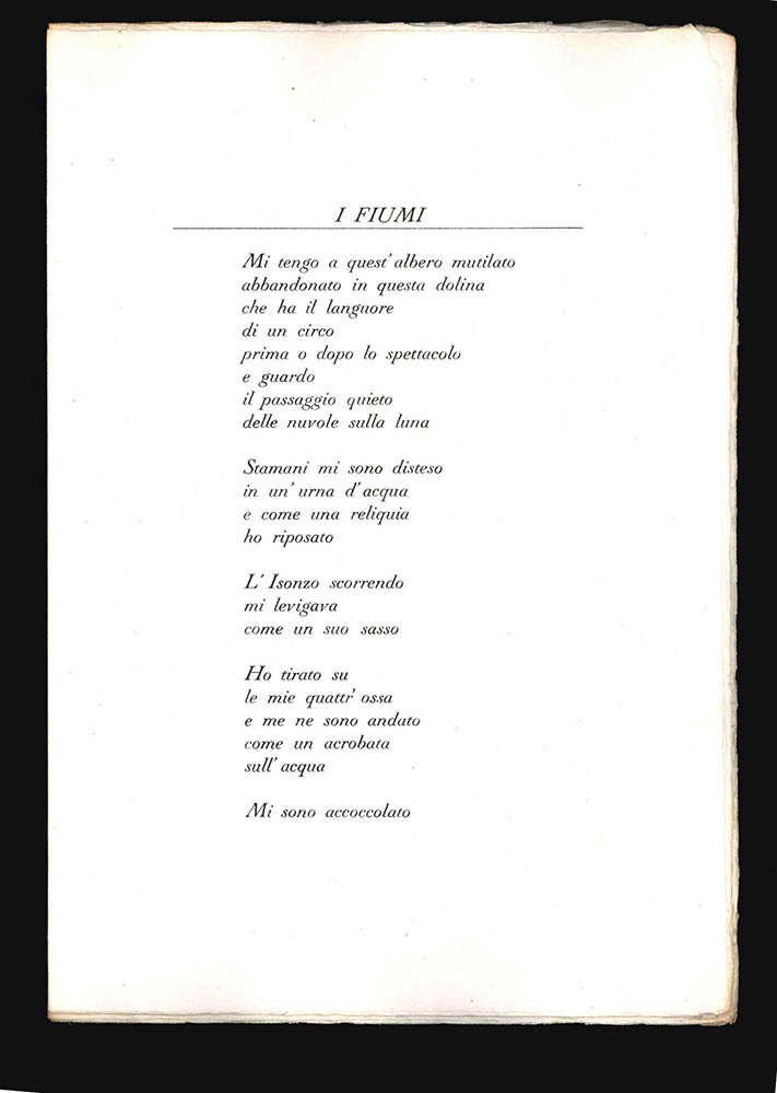 LIBROPrima edizione, tiratura di testa.Esemplare 27 di 134. Lievi gore al cofanetto e alla custodia, nel complesso un ottimo esemplare.Ottavo numero della collana «Poeti Antichi e Moderni» diretta da Luciano Anceschi e Salvatore Quasimodo. Raffinata antologia di versi – tra i tanti, oltre a Ungaretti, di Campana, Montale, Saba - stampata su carta a mano filigranata di puro straccio, composta in carattere Paganini corsivo. Intervallate alle poesie, le belle illustrazioni di ambientazione classica a piena pagina, tutte firmate da Nino Strada.