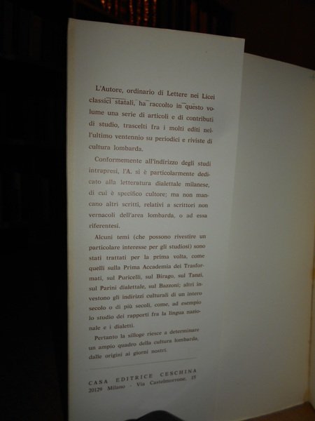 Ferdinando Cesare Farra. Milano, Casa Editrice Ceschina, 1970. POETI E SCRITTORI LOMBARDI. Contributi di studi. In-8°, cartoncino edit. con risvolti. 197 pp. Neg. mob. nero 10