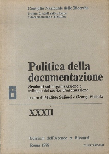 Politica della documentazione: seminari sull'organizzazione e sviluppo dei servizi d'informazione. | Rare and modern books | Salimei, Matilde - Vladutz, George.