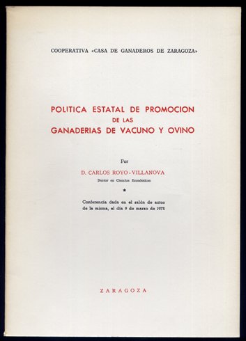 Política estatal de promoción de las Ganaderías de Vacuno y Ovino. | Rare and modern books | Royo - Villanova, Carlos.