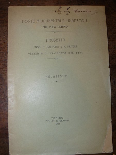 Ponte monumentale Umberto I sul Po a Torino. Variante al progetto del 1894. Relazione