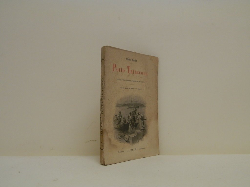 16^, mm 190x130, pp. 246, brossura editoriale illustrata da disegno di Chiostri in b/n, titolo in rosso al piatto, piccola mancanza alla'angolo superiore del piatto, una gora e tracce di umido ai margini della brossura, ma nel complesso buona copia. Prima edizione italiana, con 50 disegni di Carlo Chiostri (illustratore tra l'altro di Pinocchio). Ultimo volume della fortunata trilogia di Tartarino invenatata da Alphonse Daudet. L'eroe di Daudet è stato protagonista di numerose trasposizioni cinematografiche, la prima delle quali ad opera di Georges Meliès.. *** TUTTI I NOSTRI LIBRI SONO VISIBILI PREVIO CONTATTO MAIL O TELEFONO NELLA NUOVA SEDE DI MILANO: LIBRERIA COSMOPOLIS, VIA JOMMELLI, 22. ***