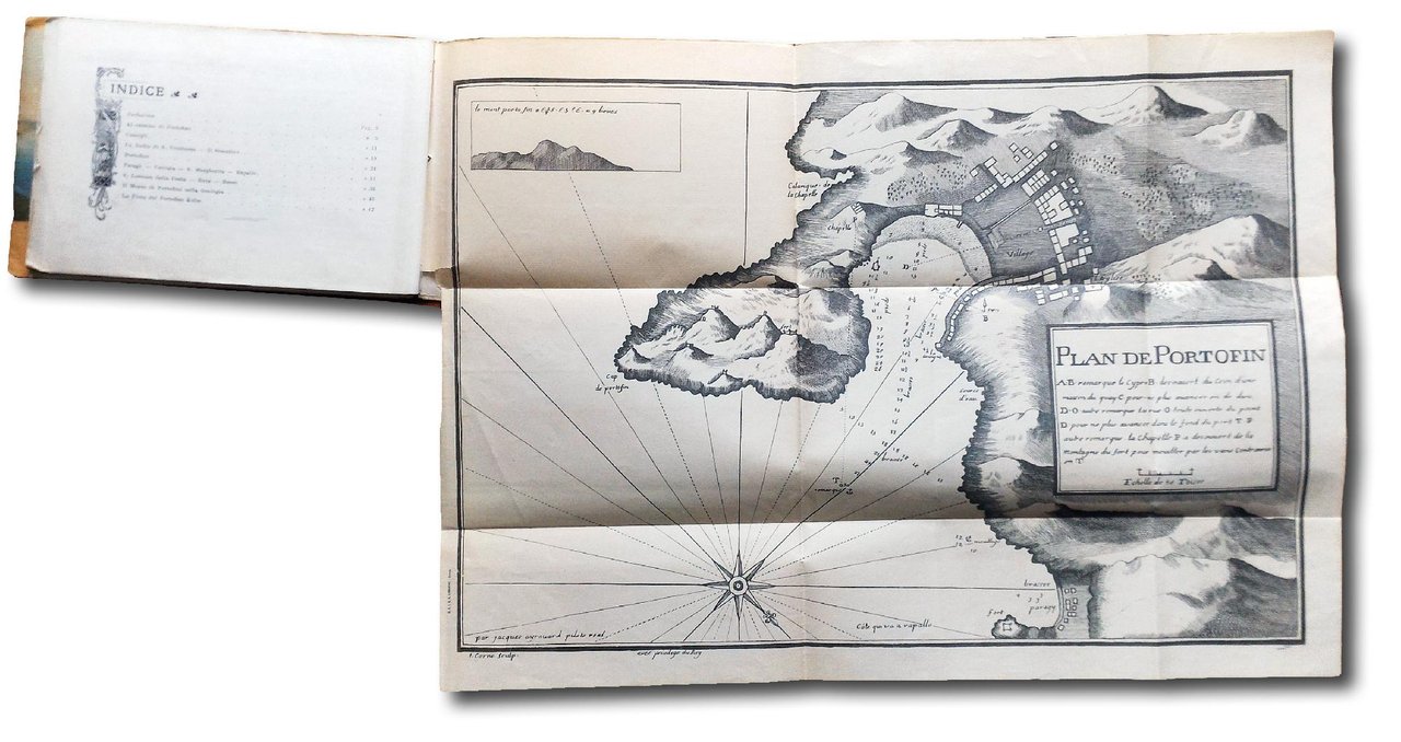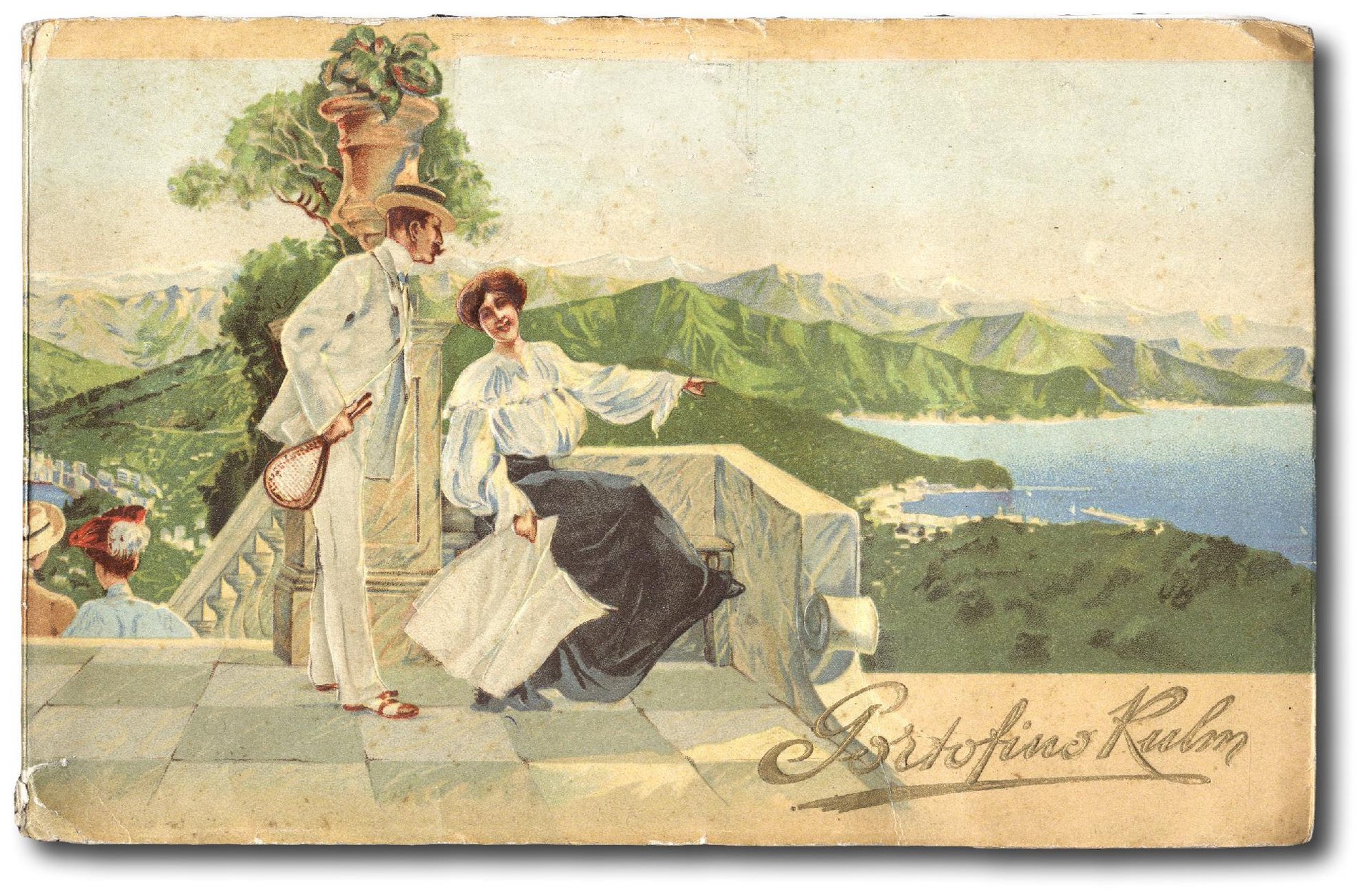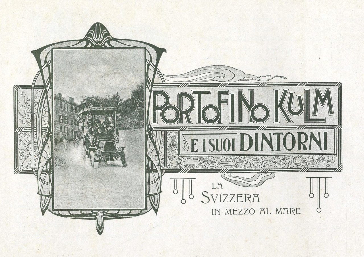 >in-12 oblungo (135x200), legatura editoriale in cartonato con immagine e colori in rilievo, numerose illustrazioni in bianco e nero nel testo, 2 grandi piante ripieg. f. t. Guida turistica che ritrae Portofino attraverso le memorie di un turista che ne descrive le bellezze paesaggistiche, le opere d'arte, e le antiche ville. Tratta inoltre di: Camogli, la Badia di S. Fruttuoso, Paragi, Cervara, S. Margherita, Rapallo, S. Lorenzo della Costa, Ruta, Recco, e della flora del Portofino Kulm. Deliziosa guida realizzata per celebrare il glorioso hotel (da cui il titolo), costruito in piena Belle époque da Sebastiano Gaggini, imprenditore del Canton Ticino. Tra i suoi ospiti illustri Margherita di Savoia, Gabriele D'Annunzio, Giacomo Puccini e Guglielmo Marconi.