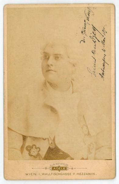 174:110 mm. Halbfigürliche Darstellung des Sängers aus dem k. k. Hof-Atelier Adele, Wien.