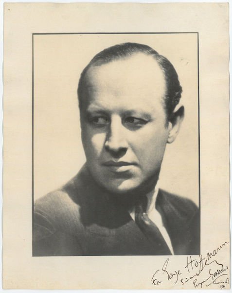 254:201 mm. S/W-Portrait im ¾-Profil. "For George Hoffmann sincerely". - Eugene Goossens hatte 1921 die britische Erstaufführung von Strawinskys "Le sacre du printemps" geleitet und war daraufhin von Impresario Sergei Djagilew als Dirigent für die "Ballets Russes" engagiert worden. Später u. a. als Dirigent des Rochester Philharmonic Orchestra, des Cincinnati Symphony Orchestra und des Sydney Symphony Orchestra tätig, galt Goossens als eine der führenden Persönlichkeiten des australischen Kulturlebens, bis ein erotischer Skandal seine Reputation nachhaltig beschädigte. Zu seinen Kompositionen zählen u. a. zwei Opern, zwei Sinfonien, zwei Streichquartette, zwei Violinsonaten, ein Concertino für Oktett, ein Oratorium und Kammermusik.