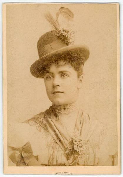 160:110 mm. Brustbild der Tänzerin aus dem k. k. Hof-Atelier Adele, Wien. Mit Signatur und Widmung "Zur freundlichen Erinnerung" auf der Verso-Seite.
