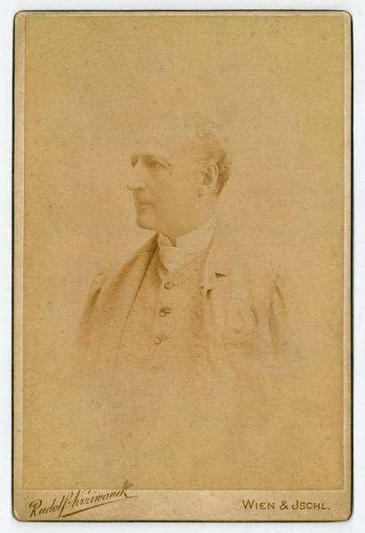 163:110 mm. Bruststück des Tänzers im Halbprofil aus dem Atelier des Photographen Rudolf Krziwanek, Wien, mit dessen gedr. Signet am unteren Rand des Trägerkartons. Unterschrift und Widmung auf der Verso-Seite: "A ma chère collegue Madame Herzog […]". - Die Bildseite etwas ausgebleicht.
