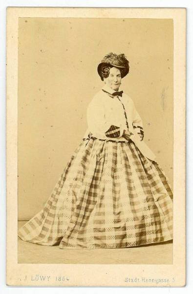 100:65 mm. Ganzfigürliche Darstellung der Schauspielerin aus dem Atelier des Photographen J. Löwy, Wien, mit Widmung "Meinem lieben Collegen Herrn Schmidt zur Erinnerung" auf der Verso-Seite. - Amalie Haizinger debütierte 1810 in Karlsruhe, gab seit 1817 Gastspiele (u. a. in Mannheim, Berlin und Weimar) und kam 1825 erstmals ans Wiener Burgtheater. "Tourneen führten sie u. a. nach Paris, London und St. Petersburg. 1846-75 gehörte sie dem Ensemble des Burgtheaters an. Haizinger glänzte als junge Frau in naiven, sentimentalen Rollen, u. a. als Luise in Schillers 'Kabale und Liebe', später als Marthe in Goethes 'Faust'" (DBE). 1836 erschienen ihre "Erinnerungsblätter".
