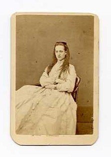 89:56 mm auf etwas größerem Untersatzkarton. Beiliegend eine Photographie nach einem lithographischen Portrait Prinzessin Alexandras und ihres Gatten Albert Eduard Fürst von Wales, des späteren Königs Eduard VII. Ganzfigürliche Aufnahme im Sitzen. - Alexandra, die älteste Tochter von Prinz Christian, dem späteren König Christian IX. von Dänemark und seiner Frau Louise von Hessen-Kassel, wurde 1863 Gattin des späteren Königs Eduard VII. Als Königin war sie im Volk ihrer karitativen Bemühungen wegen äußerst beliebt.