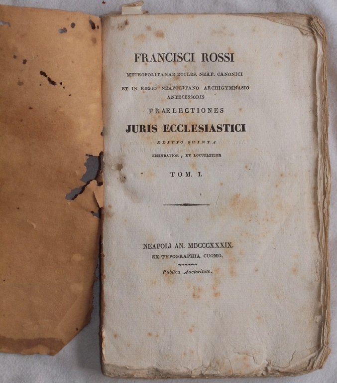PRAELECTIONES JURIS ECCLESIASTICI EDITIO QUINTA EMENDATIOR ET LOCUPLETIOR TOM. I