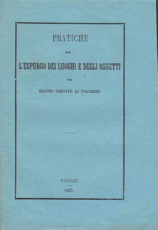 Pratiche per l'espurgo dei luoghi e degli oggetti che hanno servito ai colerosi Firenze 1865