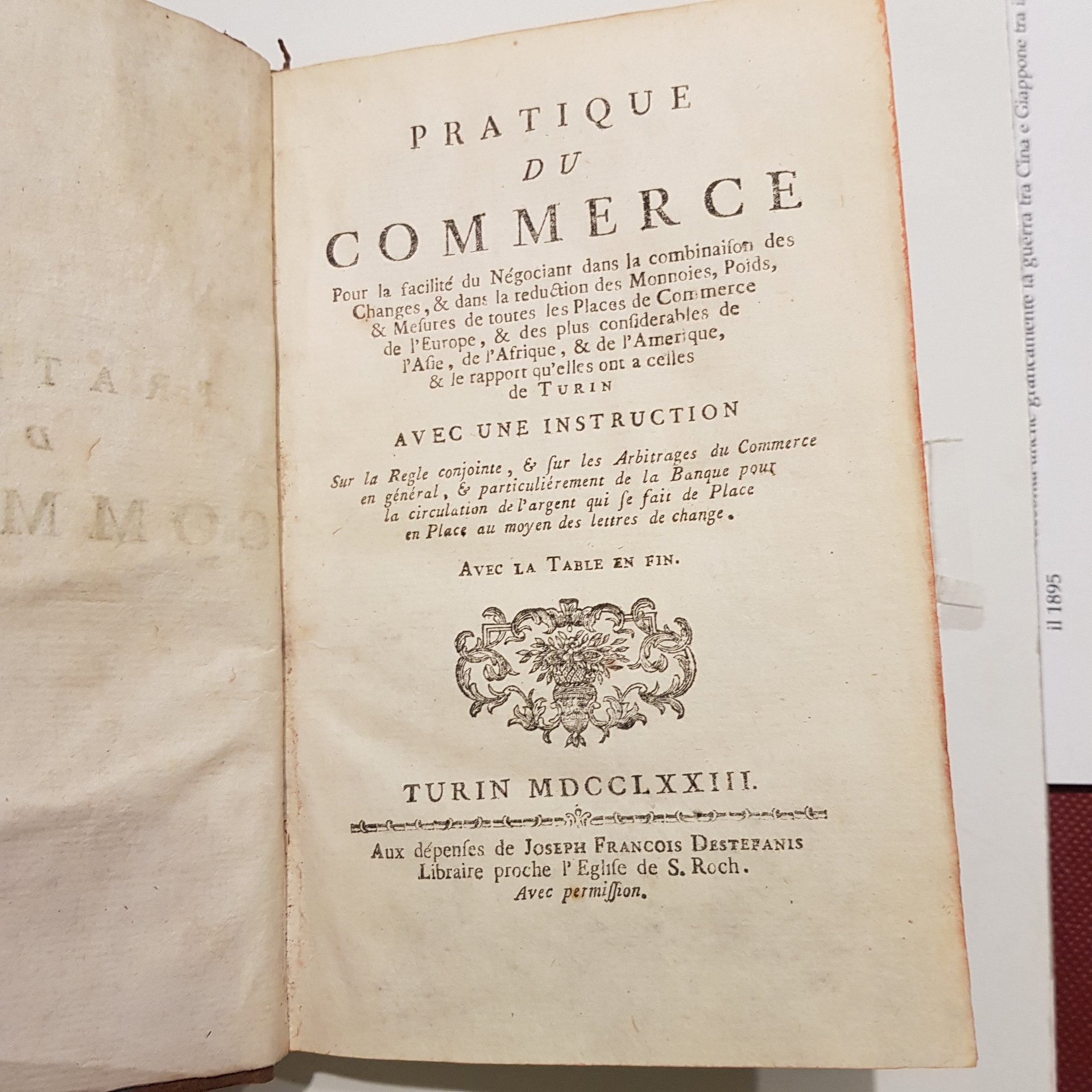 Pratique du Commerce pour la facilité du Négociant dans la combinaison des changes et dans la réduction des monnoies, poids et mesures de toutes les places de commerce de l'Europe. de l'Asie, de l'Asie et de l'Amérique, et le rapport qu'elles ont à celles de Turin.