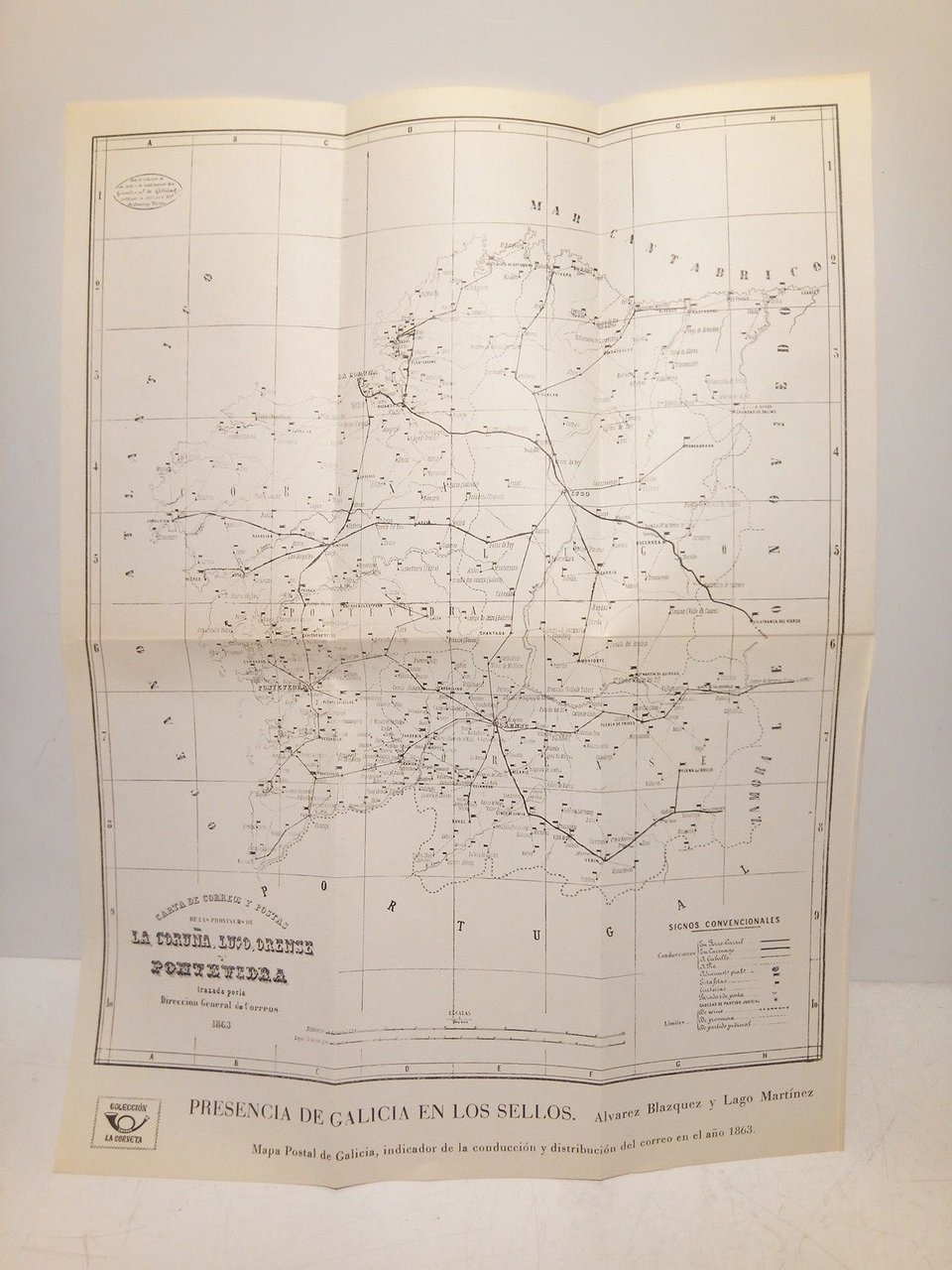 Barcelona: Ed. Artigas, 1965.- 226 p., [2 h.]: Ilustraciones filatélicas entre el texto; 8º (17,3 x 12,5 cm); Cartulina Ed. con solapas.- (Col. La Corneta. 5).- Incluye al final solapado un mapa postal de Galicia facsímil de 1863, indicador de la conducción del correo en Galicia ese mismo año. RARO.* Excelente estado. POSTAS, FILATELIA, TARJETAS POSTALES Y CRISMAS