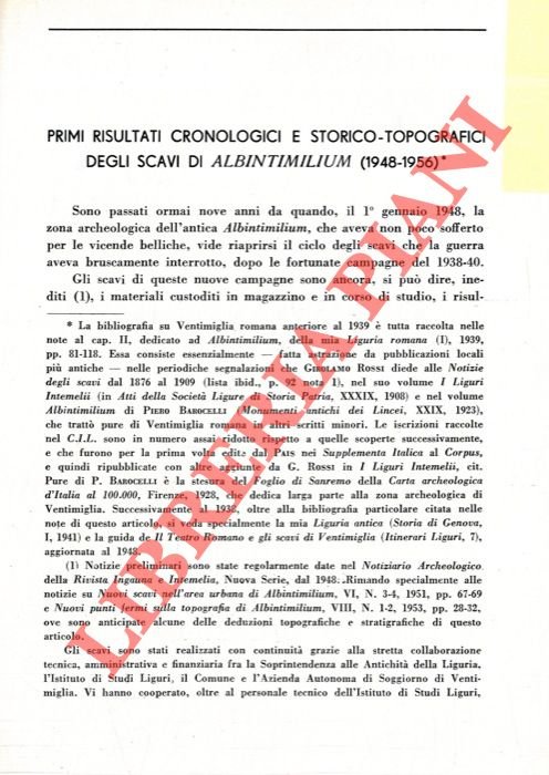 Primi risultati cronologici e storico-topografici degli scavi di Albintimilium (1948-1956) .
