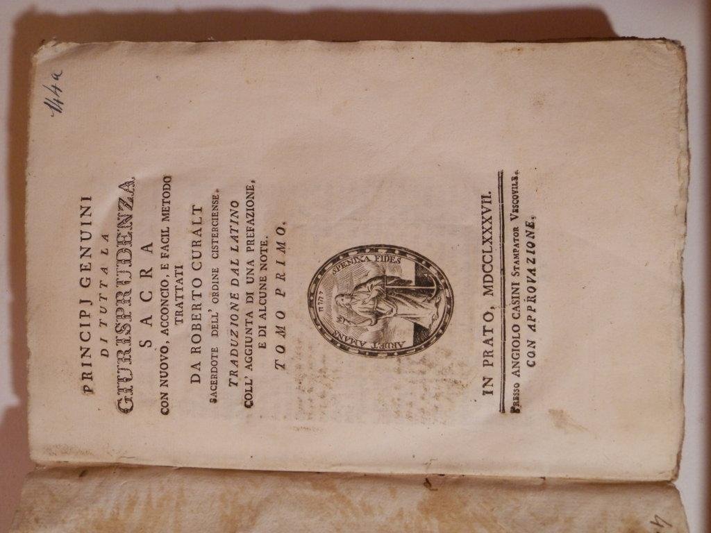 Principj genuini di tutta la giurisprudenza sacra con nuovo, acconcio e facil metodo trattati da Roberto Curalt. Traduzione dal latino coll'aggiunta di una prefazione e di alcune note