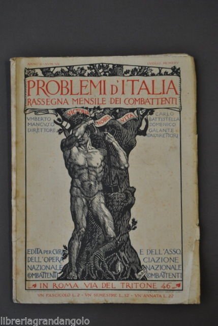 Vedere la descrizione dettagliata Problemi d'Italia"Rassegna Mensile dei Combattenti Anno II Num. VII luglio MCMXXV Industrie Grafiche Grafia, Roma 1924; 27,5x20,5 cm; pp. 76. Brossura ed. illustrata da De Carolis. Illustrazioni b.n. fuori testo. Condizioni di conservazione. Esemplare in buono stato di conservazione con leggeri segni del tempo. Leggere abrasioni ai margini ed agli angoli della brrossura. Piccoli spacchetti e pieghette. Bruniture. Interessantissima rivista dei Combattenti. dall'indice: La battaglia del Piave; La Fiera Internazionale del Libro; Le Stazioni del nostro Calvario; La Casa del soldato a Roma. Per altri volumi e documenti su questo e altri argomenti visitate il nostro negozio "Libreria Grandangolo" CONDIZIONI DI VENDITA Spedizione Fino a 5 kg piego di libri raccomandato, oltre i 5 kg pacco postale. Si ricorda che l'imballo viene eseguito con la massima cura. La merce viene spedita a pagamento avvenuto e viaggia a rischio e pericolo dell'acquirente. Per maggiori informazioni vedi la pagina SPEDIZIONI del nostro negozio. Ritiro diretto Siamo disponibili per il ritiro diretto a Modena e a Milano. Per gli indirizzi delle sedi vedi la pagina DOVE SIAMO del nostro negozio. Acquisti multipli Se si acquistano più libri, la spedizione si paga una sola volta, purché si rispettino gli scaglioni di peso. Estero / Foreign For international shipment, please contact us. Metodo di pagamento Pay Pal, bonifico bancario, versamento postale (cc/p, vaglia o altro). La spedizione avverrà entro i primi 4 giorni lavorativi dopo la conferma di avvenuto pagamento. Si emette ricevuta fiscale e a richiesta fattura. Il pagamento deve essere effettuato entro 7 giorni lavorativi dalla data di acquisto, trascorsi i quali l'oggetto sarà rimesso in vendita. Feedback Viene rilasciato dall'acquirente dopo il ricevimento di quanto acquistato. Data la sua importanza, vi invitiamo a leggere il breve testo della pagina FEEDBACK del nostro negozio. Pertanto, in caso di qualsiasi problema, non esitate a contattarci. Diritto di recesso L'acquirente ha il diritto di restituire l'oggetto entro 14 giorni ed essere rimborsato, escluse le spese di porto e imballo. L'oggetto deve essere restituito, dopo previa comunicazione, imballato e nelle medesime condizioni di come era all'origine. Creato da Turbo Lister Strumento gratuito per mettere in vendita i tuoi oggetti. Metti in vendita i tuoi oggetti in modo facile e veloce e gestisci le inserzioni in corso. "