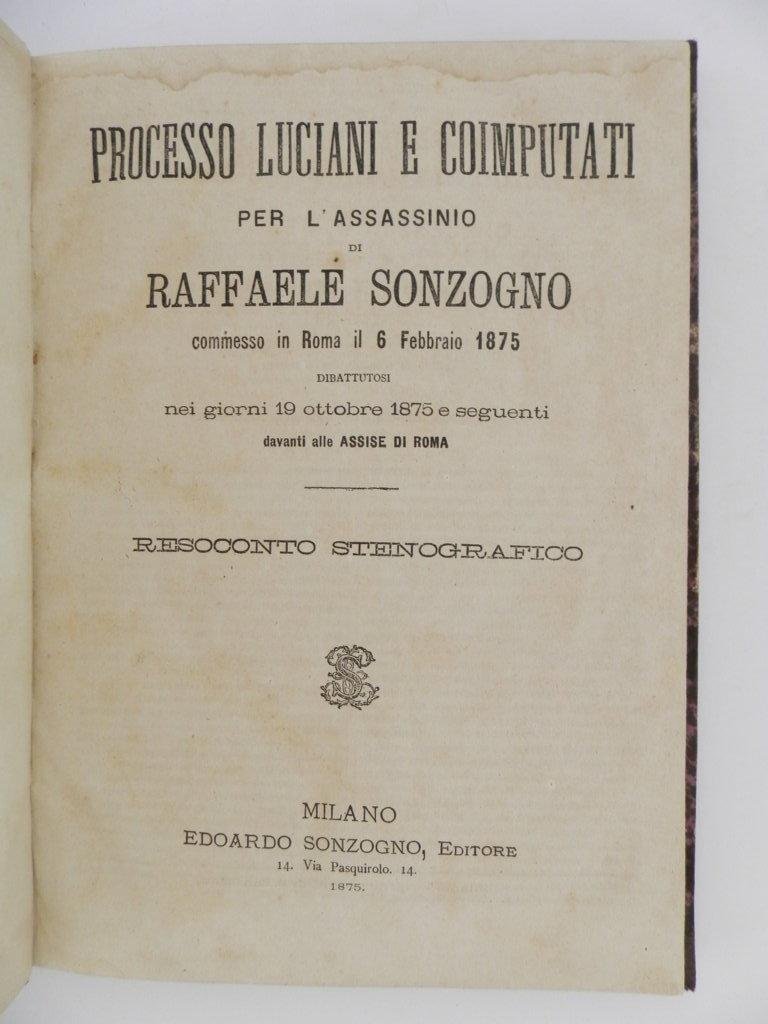 Processo Luciani e coimputati per l'assasinio di Raffaele Sonzogno commesso in Roma il 6 febbraio 1875 dibattutosi nei giorni 19 ottobre 1875 e seguenti davanti all assise di Roma. Resoconto stenografico